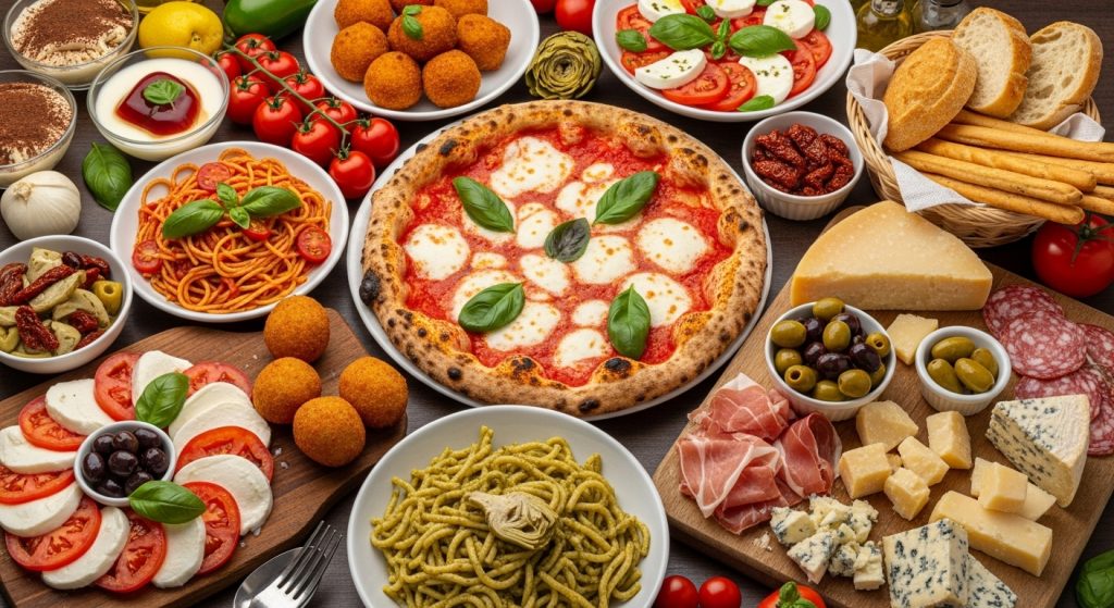 Italian cuisine centers around pizza and pasta. Pizza, spreading from Naples to the world, is a simple yet delicious icon with its thin crust, fresh tomato sauce, mozzarella cheese, and basil. Each region has its own style; Neapolitan pizza is soft with puffy edges, while Roman pizza is thinner and crispier. Pasta is one of Italy’s most versatile dishes, prepared in hundreds of different forms such as spaghetti, penne, tagliatelle, and ravioli. Each sauce reflects the culture of the region: meat-based ragù (Bolognese) in Bologna, carbonara made with egg and cheese in Rome, and tomato-based marinara in Naples. Pizza and pasta are universal symbols of the perfect flavor hidden in the simplicity of Italian cuisine.